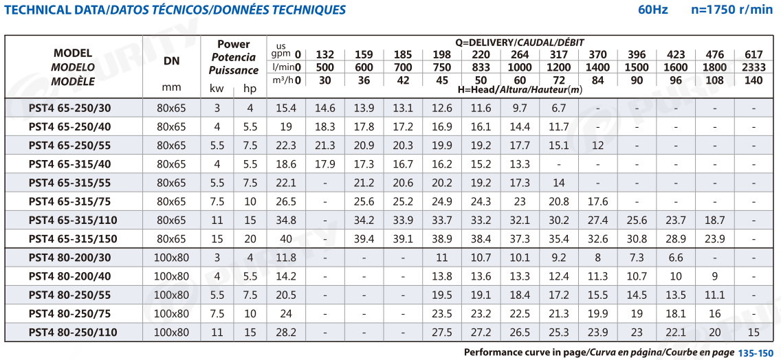 بفضل تقنية المحاكاة الهيدروليكية المتقدمة، تتميز مضخة الطرد المركزي أحادية المرحلة Purity PST4 بمنحنى أداء متوازن وسلس، مما يوفر نطاق تدفق واسعًا لتلبية متطلبات التشغيل المتنوعة. يسمح هذا التصميم للمضخة بالحفاظ على كفاءة عالية وإنتاج ثابت، مما يجعلها مناسبة بشكل خاص لبيئات مكافحة الحرائق القاسية حيث تُعد الموثوقية والأداء عنصرين حاسمين.
