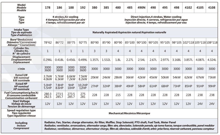 تشمل محركات ديزل Purity PD نماذج أحادية الأسطوانة مبردة بالهواء وذات سحب طبيعي، بالإضافة إلى محركات ديزل مبردة بالماء بثلاث إلى ست أسطوانات. تتوفر النسخ المبردة بالماء بتكوينات السحب الطبيعي والشحن التوربيني، مما يتيح للمستخدمين اختيار الحل الأمثل بناءً على متطلبات الطاقة وظروف التشغيل. يتميز محرك الديزل الصناعي أحادي الأسطوانة المبرد بالهواء ببنية بسيطة وسهولة الصيانة، مما يجعله مثاليًا لوحدات المضخات المدمجة أو المتنقلة. في المقابل، توفر المحركات متعددة الأسطوانات المبردة بالماء تشغيلًا أكثر سلاسة، وإنتاجية أعلى، واستقرارًا حراريًا أفضل للتطبيقات التي تتطلب التشغيل المستمر.