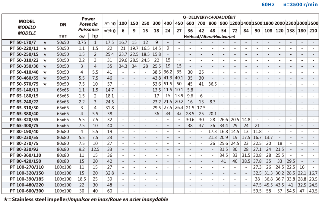 تتميز مضخة الطرد المركزي العمودية Purity PT بالصب المتكامل، والهيدروليكا عالية الكفاءة، والمحرك المتين من الفئة F، والأختام المقاومة للتآكل من أجل تشغيل موثوق به ومنخفض الصيانة.