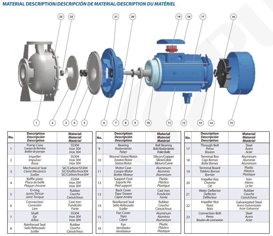 مضخات الطرد المركزي الصناعية Purity PZ المصنوعة من الفولاذ المقاوم للصدأ تعمل بمحرك قوي مُصنَّع من سلك نحاسي مطلي بالمينا من الفئة F، مما يوفر مقاومة حرارية ممتازة وأداءً مستقرًا حتى أثناء فترات التشغيل المُستمر الطويلة. بفضل تصنيف الحماية IP55، يتمتع المحرك بحماية من دخول الغبار ورذاذ الماء، مما يسمح له بالعمل بكفاءة في البيئات الصعبة أو الخارجية. بالإضافة إلى ذلك، تتميز مضخات الطرد المركزي الصناعية المصنوعة من الفولاذ المقاوم للصدأ بمحامل NSK عالية الجودة ومانع تسرب ميكانيكي متين، وكلاهما مصمم لتقليل التآكل بشكل كبير وإطالة العمر الافتراضي.