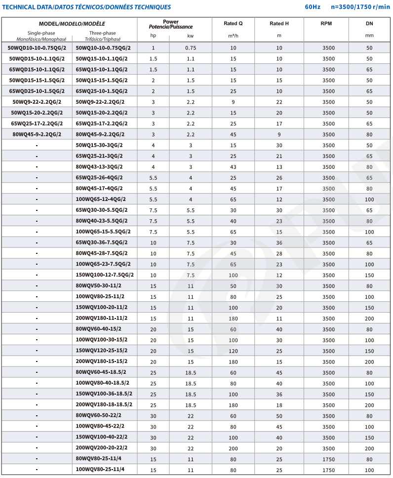 تتميز مضخة الصرف الصحي الغاطسة Purity WQV بمروحة قطع وحماية المحرك الحراري ومحامل NSK المتينة، مما يضمن كفاءة عالية في تطبيقات مياه الصرف الصحي الصعبة.