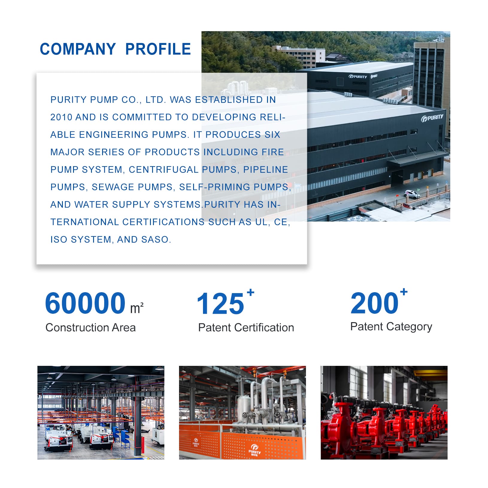 تقدم شركة Purity مجموعة شاملة من حلول المضخات الطاردة المركزية، بما في ذلك المضخات متعددة المراحل، والمضخات الغاطسة، والمضخات الرأسية، ومضخات الغلاف المنفصل.