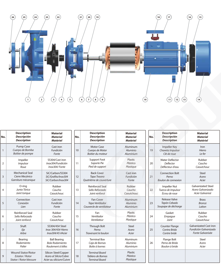 (1)مجموعة واسعة من المنتجات تشمل المضخات الطاردة المركزية متعددة المراحل، والمضخات الطاردة المركزية ذات الشفط الطرفي، والمضخات الطاردة المركزية ذات الغلاف المنفصل، والمضخات الخطية، وغيرها.