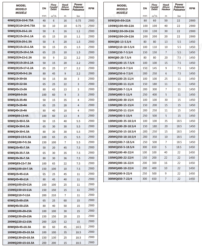 بشكل عام، توفر مضخة مياه الصرف الصحي الغاطسة Purity WQA مزيجًا قويًا من المتانة والكفاءة وسهولة الصيانة. إنها الخيار الأمثل للتطبيقات التي تتطلب معالجة موثوقة لمياه الصرف الصحي، مثل أنظمة الصرف الصحي البلدية، ومعالجة مياه الصرف الصحي للمباني، وتصريف مياه الصرف الصناعي، ومكافحة الفيضانات.